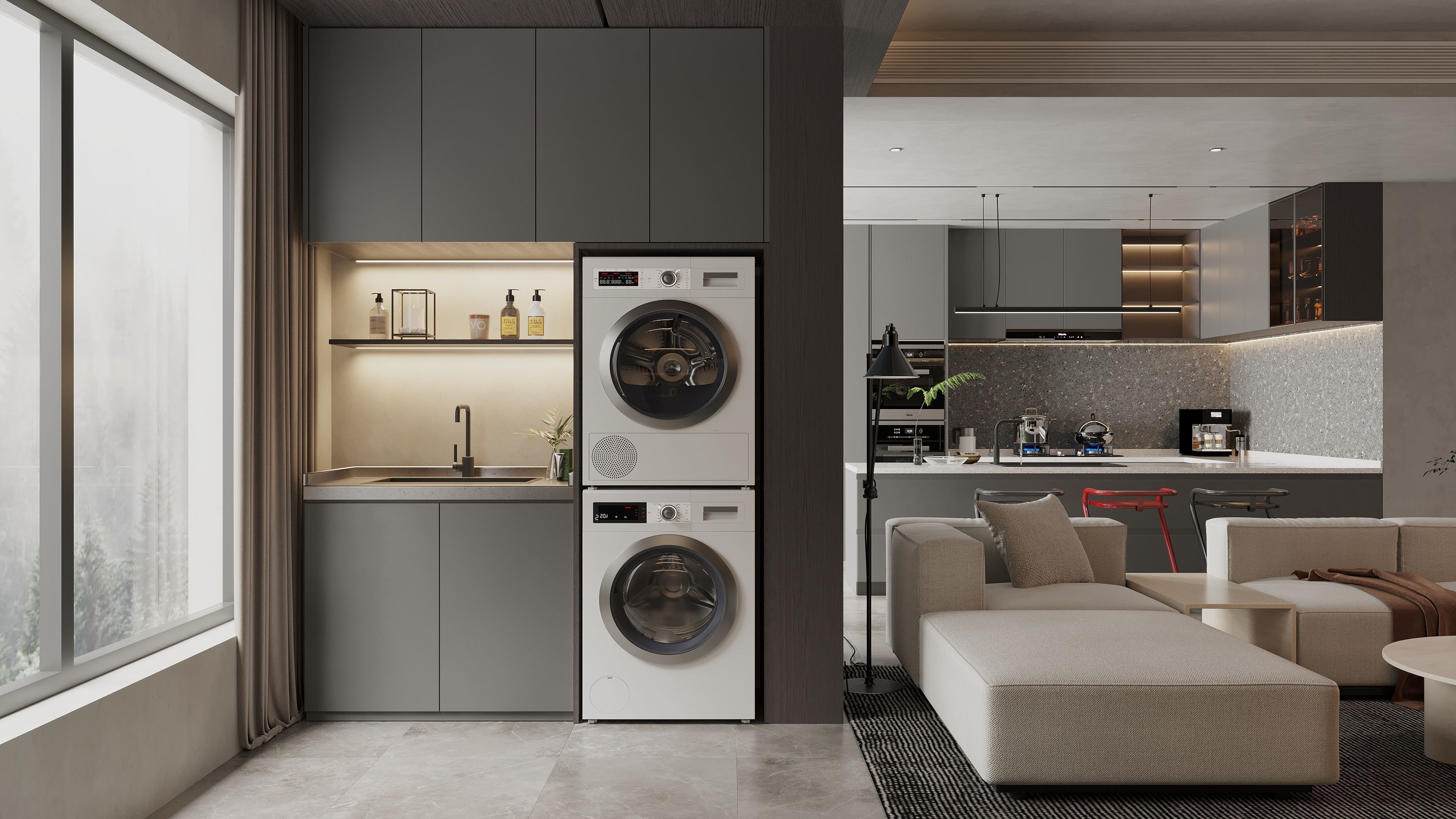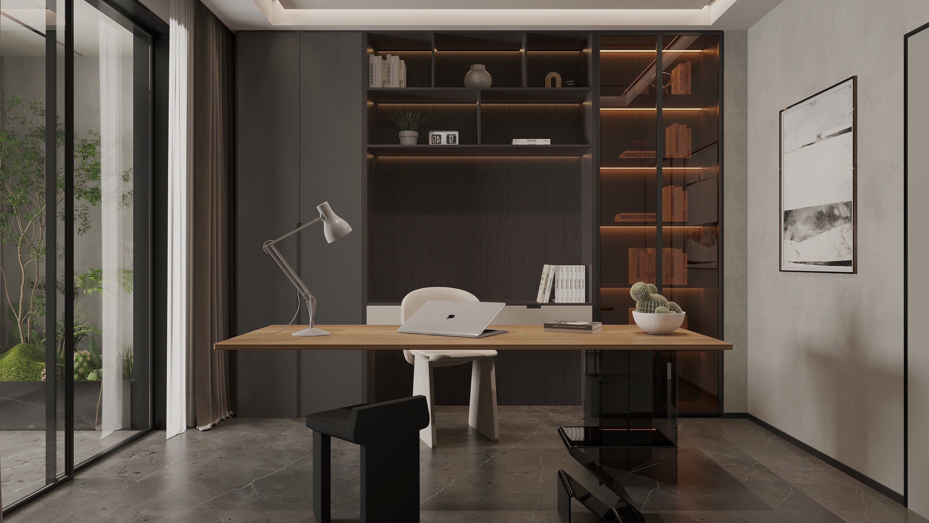 T75系列靈感來源于英國著名燈具品牌Anglepoise,源于他們最擅長的極簡工業化風格和硬朗的金屬材質在起落間靈活變換,莫干山速裝家T75系列整體設計風格承接了工業風標志性的黑白灰,大面積的使用這種化繁為簡的色彩搭配,比起色彩斑斕更能直擊靈魂深處,告別了那些花里胡哨,讓居住環境趨于舒緩和平靜。原木、金屬、皮革的等材質與生俱來的的原始質感也給整個空間抹上了濃厚的藝術氣息。